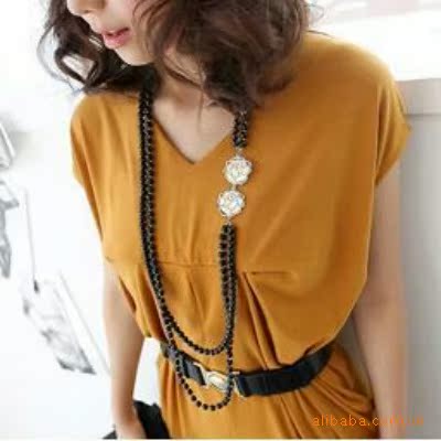 韩国玫瑰花朵贝壳珍珠项链毛衣链